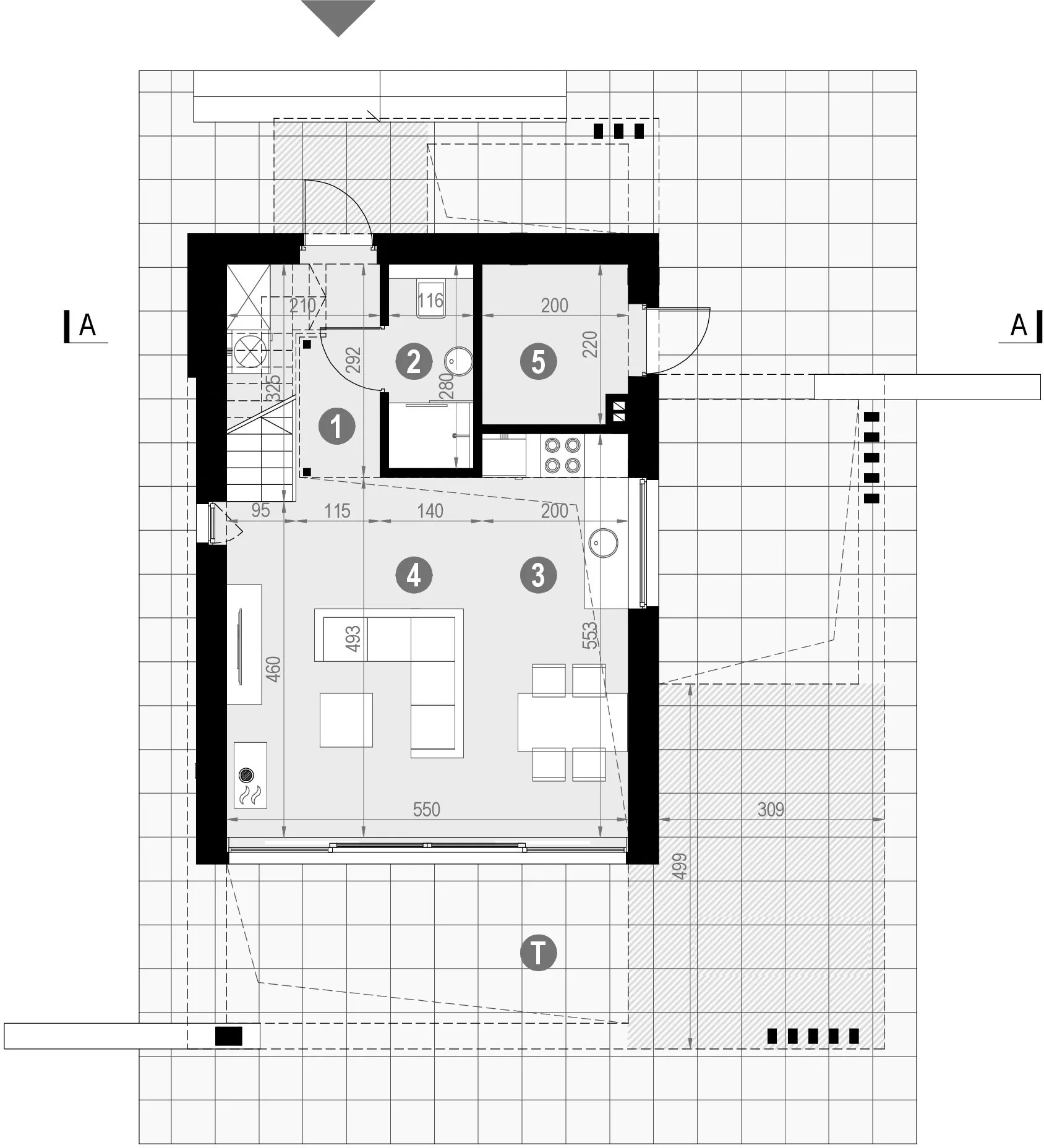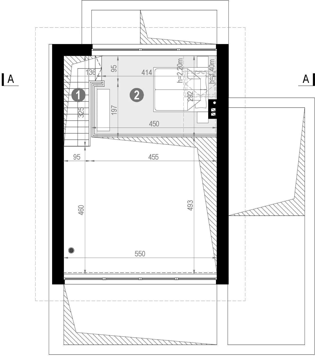 Высота 1-го этажа:2.5м (опция до 3.0м)